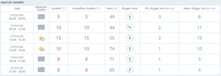 Öğle saatlerinde 15 dereceye kadar yükselmesi öngörülen hava sıcaklığının, akşam saatlerinde 8 dereceye, gece ise 7 dereceye kadar düşeceği tahmin ediliyor.