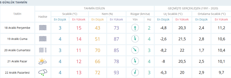 BURSA'DA 5 GÜNLÜK HAVA DURUMU TAHMİNİ