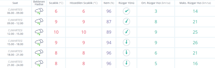 Bugün CUMARTESi sıcaklık gün içinde en yüksek 10 derece olarak ölçülürken gün içinde kapalı ve yağışlı bir hava etkili oluyor.