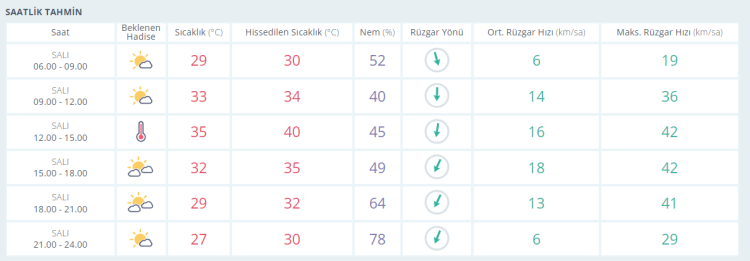 Öğle saatleri sonrası ise az bulutlu ve güneşli şehir genelinde termometreler 35 derece seviyelerinde ölçülüyor. Hissedilen sıcaklık ise 40 derece ve üzerinde olacak.
