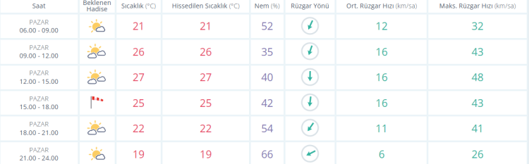Bugün PAZAR sıcaklık gün içinde en yüksek 27 derece olarak ölçülürken gün içerisinde sıcak bir hava ile birlikte rüzgar etkili oluyor.