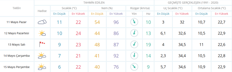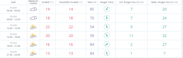 Rapora göre sıcaklıklar 24 dereceye kadar yükselirken gün verilerek sıcaklık ve rüzgar uyarısı yapıldı.