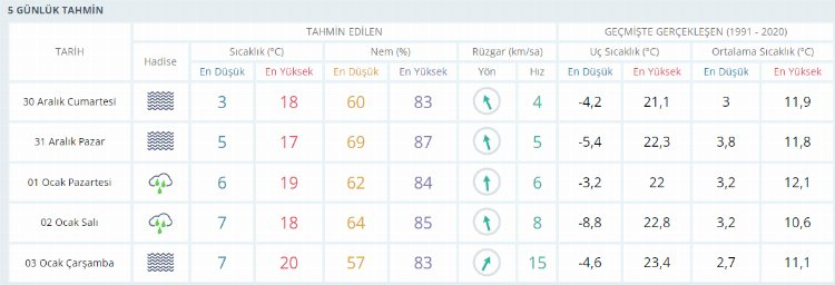 Meteoroloji’nin 5 günlük hava tahmin raporuna göre Bursa genelinde hafta sonu için sıcaklık uyarısı gelirken yılbaşı akşamı hava durumu ve yeni yılın ilk günlerinde yağışla ilgili uyarılar peş peşe geldi.