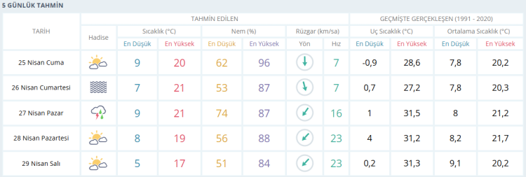 İŞTE BURSA İÇİN 5 GÜNLÜK HAVA DURUMU TAHMİNİ (25 NİSAN 2025)