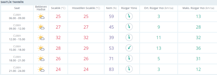 CUMARTESİ: Parçalı bulutlu, 32 derece