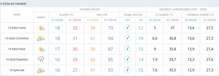 İŞTE BURSA İÇİN 5 GÜNLÜK HAVA DURUMU TAHMİNİ (12 EYLÜL 2025)