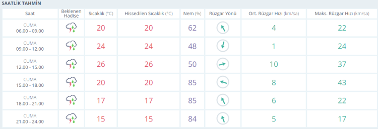 CUMARTESİ: Sağanak yağışlı, 24 derece