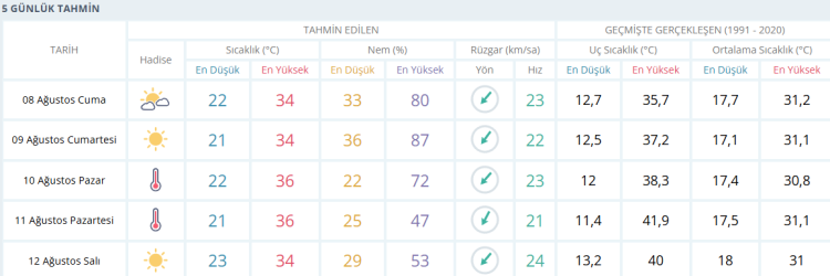 İŞTE BURSA İÇİN 5 GÜNLÜK HAVA DURUMU TAHMİNİ (8 AĞUSTOS 2025)