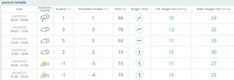 İŞTE BURSA İÇİN SAATLİK HAVA DURUMU TAHMİNİ (29 ARALIK 2025)