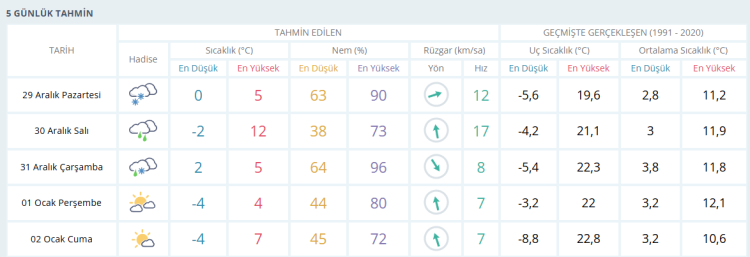 İŞTE BURSA İÇİN 5 GÜNLÜK HAVA DURUMU TAHMİNİ (29 ARALIK 2025)