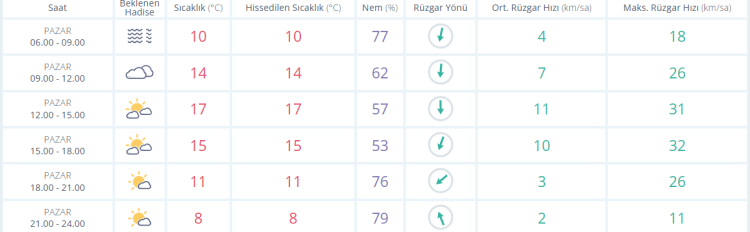 Bugün PAZAR sıcaklık gün içinde en yüksek 17 derece olarak ölçülürken gün içinde güneşli fakat serin bir hava etkili oluyor.
