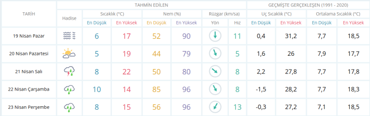 İşte Bursa için 5 günlük hava durumu tahminleri: