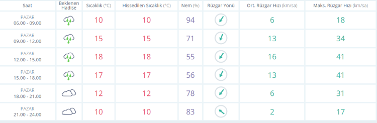 Gece saatlerinde ise sıcaklıklar 10 dereceye düşerken kapalı bir hava ile gün sona eriyor.