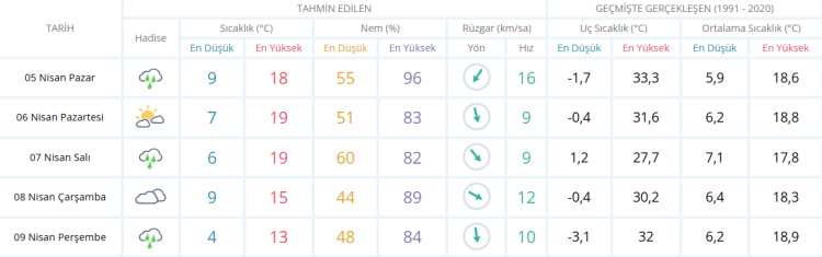 İşte Bursa için 5 günlük hava durumu tahminleri: