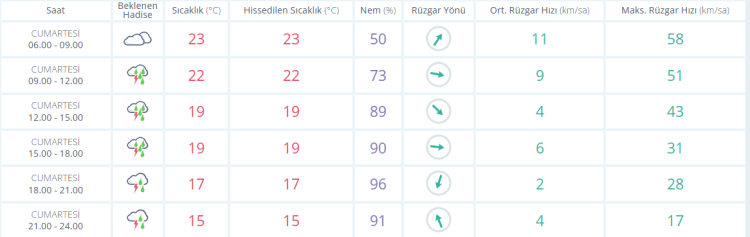 Bugün CUMARTESİ sıcaklık gün içinde en yüksek 24 derece olarak ölçülürken gün içerisinde sıcak bir hava ile birlikte gök gürültülü kuvvetli sağanak yağış etkili oluyor.