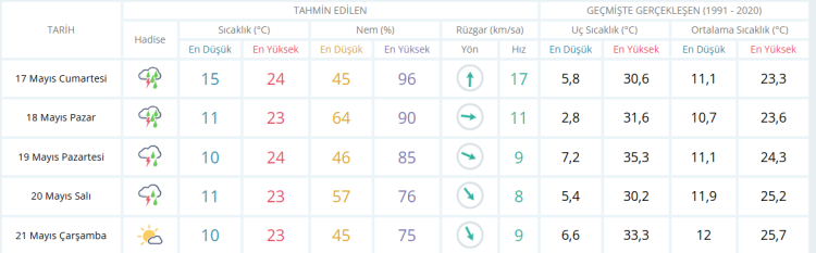 İşte Bursa için 5 günlük hava durumu tahminleri: