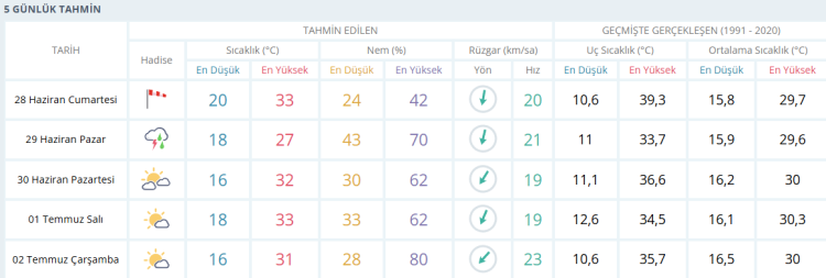 İŞTE BURSA İÇİN 5 GÜNLÜK HAVA DURUMU TAHMİNİ (28 HAZİRAN 2025)
