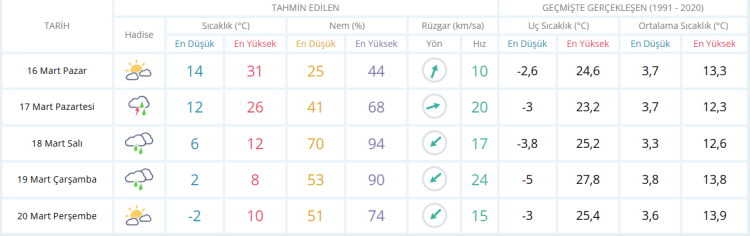 İşte Bursa için 5 günlük hava durumu tahminleri: