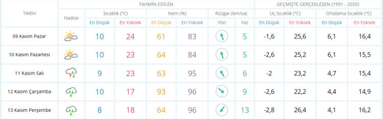 İşte Bursa için 5 günlük hava durumu tahminleri:
