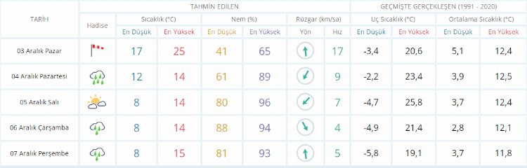 Diğer yandan Meteoroloji'nin Bursa için 5 günlük hava tahmin raporuda belli oldu.