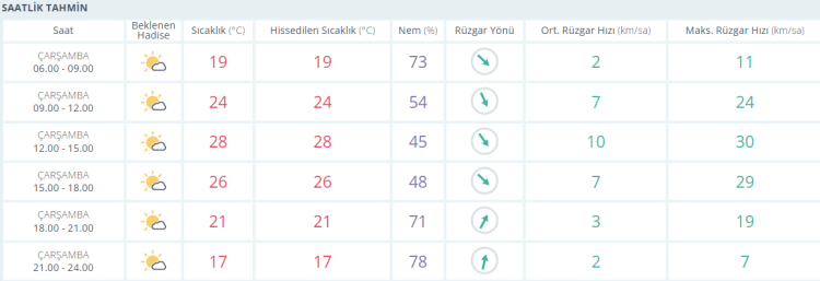 İŞTE BURSA İÇİN SAATLİK HAVA DURUMU TAHMİNİ (24 EYLÜL 2025)