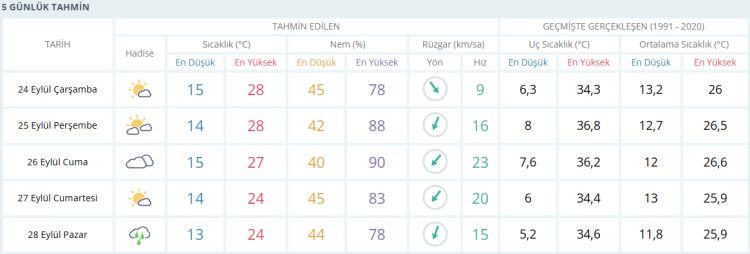 İŞTE BURSA İÇİN 5 GÜNLÜK HAVA DURUMU TAHMİNİ (24 EYLÜL 2025)