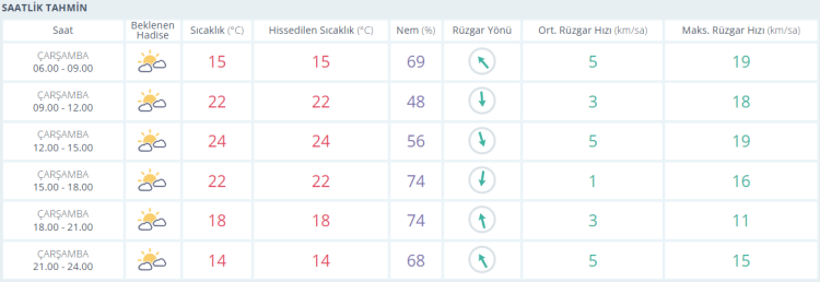 Akşam saatlerine doğru ise termometreler 22 derece ve parçalı bulutlu gösteriyor.