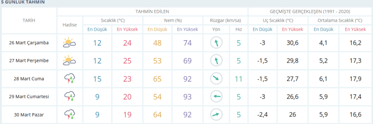 İŞTE BURSA İÇİN 5 GÜNLÜK HAVA DURUMU TAHMİNİ (26 MART 2025)