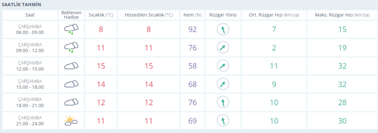 Hava sıcaklığının öğle saatlerinde 15 dereceye kadar yükselmesi, akşam saatlerinde 12 dereceye, gece ise 11 dereceye kadar düşmesi bekleniyor.