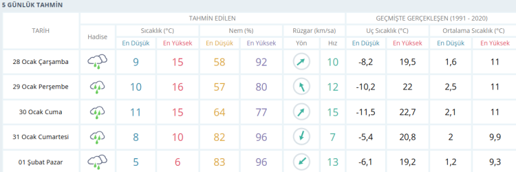 BURSA'DA 5 GÜNLÜK HAVA DURUMU TAHMİNİ