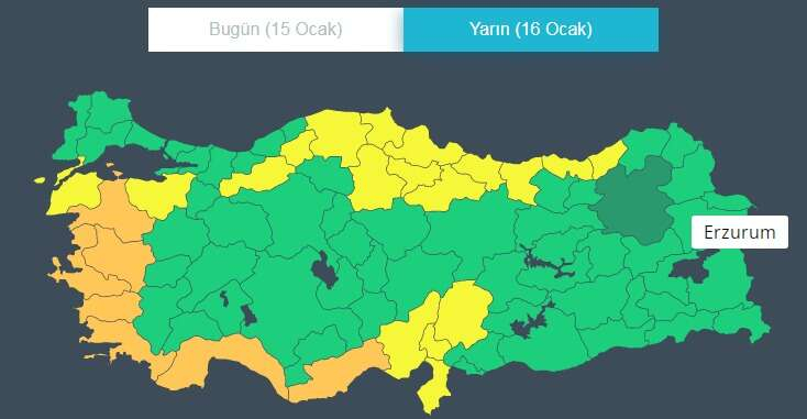 Meteoroloji Genel Müdürlüğü tarafından yapılan son değerlendirmelere göre; akşam saatlerinden sonra batı kesimlerde başlayacak olan sağanak ve gök gürültülü sağanak yağışların İzmir, Aydın, Manisa, Muğla ve Balıkesir’in batı ilçelerinde çok kuvvetli ve şiddetli (51-100 kg/m2), Çanakkale’nin güneyi ile zamanla Balıkesir, Bursa çevrelerinde kuvvetli (21-50 kg/m2) olması bekleniyor.