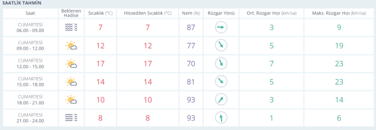 İŞTE BURSA İÇİN SAATLİK HAVA DURUMU TAHMİNİ (8 MART 2025)