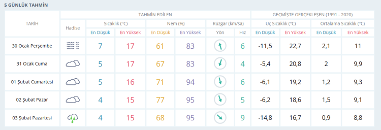 İŞTE BURSA İÇİN 5 GÜNLÜK HAVA DURUMU TAHMİNİ (30 OCAK 2025)