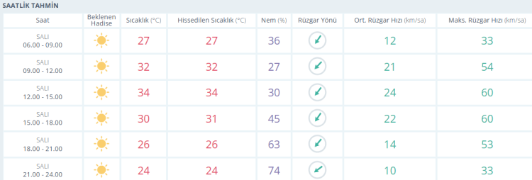 ÇARŞAMBA: Rüzgarlı, güneşli ve 34 derece