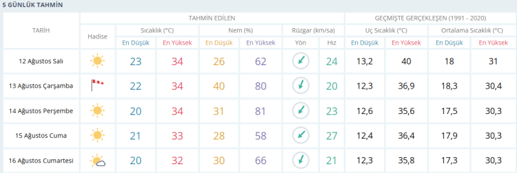 İŞTE BURSA İÇİN 5 GÜNLÜK HAVA DURUMU TAHMİNİ (12 AĞUSTOS 2025)