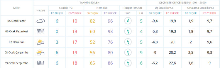 İşte Bursa için 5 günlük hava durumu tahminleri: