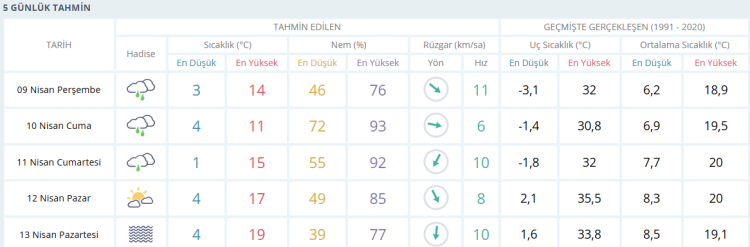 İŞTE BURSA İÇİN 5 GÜNLÜK HAVA DURUMU TAHMİNİ (9 NİSAN 2026)