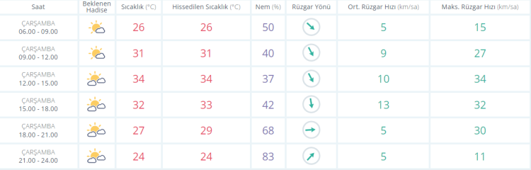 Öğle saatlerinde ise sıcaklıklar 34 derece olarak ölçülürken nem oranının hızla düşüşe geçmesi ile birlikte gün içinde vatandaşları terleten sıcaklar yerini yakıcı yakıcı sıcağa bırakıyor.