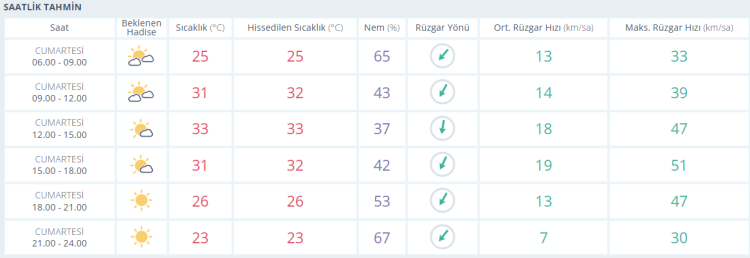İŞTE BURSA İÇİN SAATLİK HAVA DURUMU TAHMİNİ (12 TEMMUZ 2025)