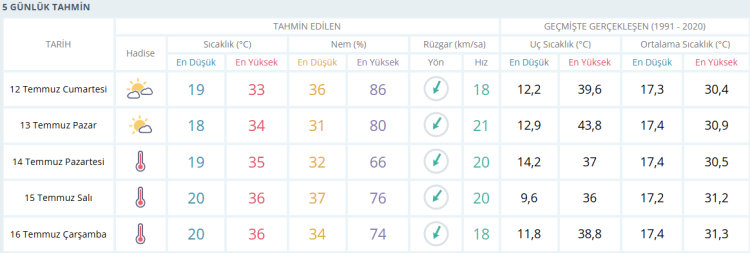 İŞTE BURSA İÇİN 5 GÜNLÜK HAVA DURUMU TAHMİNİ (12 TEMMUZ 2025)