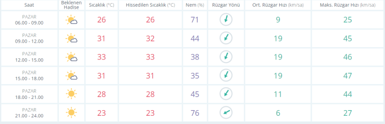 Öğle saatlerinde ise sıcaklıklar 33 dereceye kadar yükselirken gün içinde nemli hava yerini yakıcı güneşe bırakıyor.