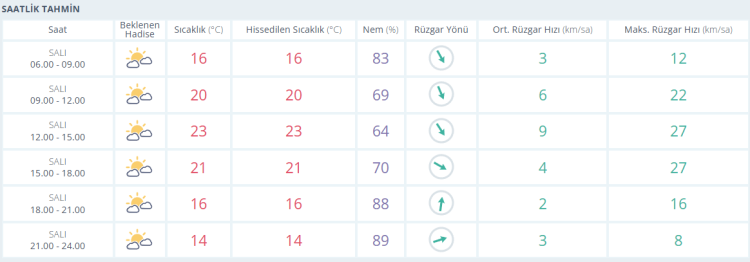 Akşam saatlerine doğru ise termometreler 21 derece ve parçalı bulutlu gösteriyor.