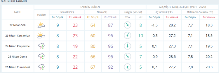 İŞTE BURSA İÇİN 5 GÜNLÜK HAVA DURUMU TAHMİNİ (22 NİSAN 2025)