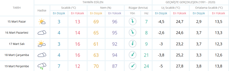 İŞTE BURSA İÇİN 5 GÜNLÜK HAVA DURUMU TAHMİNİ (15 MART 2026)
