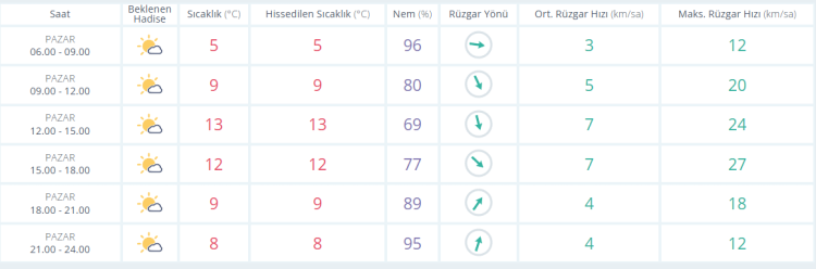Tahminlere göre kentte hava sıcaklığının gün içinde 13 dereceye kadar yükselmesi beklenirken, akşam saatlerinde sıcaklıklar 9 dereceye, gece saatlerinde ise 8 derece civarına kadar düşmesi öngörülüyor.