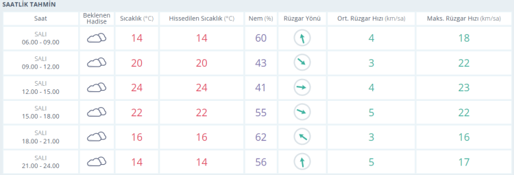 Akşam saatlerine doğru ise termometreler 22 derece ve bulutlu gösteriyor.