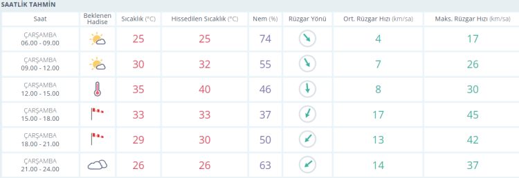 CUMARTESİ: Az bulutlu, sıcaklık 38 derece.