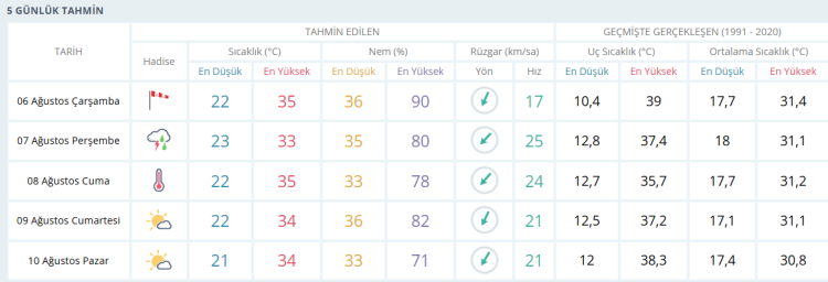 İŞTE BURSA İÇİN 5 GÜNLÜK HAVA DURUMU TAHMİNİ (6 AĞUSTOS 2025)