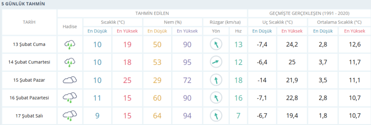 İŞTE BURSA İÇİN 5 GÜNLÜK HAVA DURUMU TAHMİNİ (13 ŞUBAT 2025)