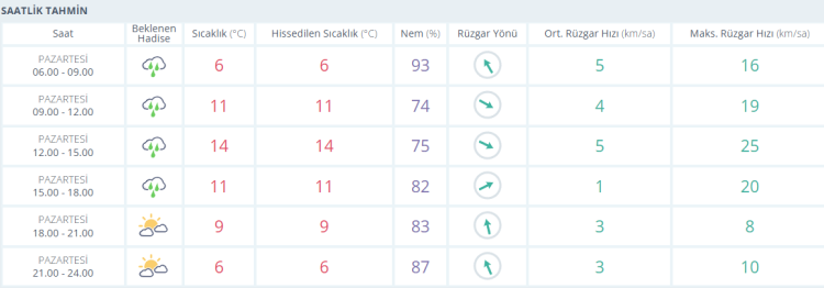 Sıcaklıkların öğle saatlerinde 14 dereceye kadar yükselmesi, akşam saatlerinde 9 dereceye, gece ise 6 dereceye düşmesi öngörülüyor.